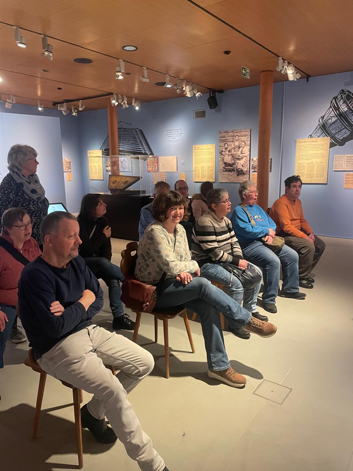 Die erste Gruppe besuchte das Museum und erhielt eine interessante Führung durch die Ausstellung zur Volksmusik.